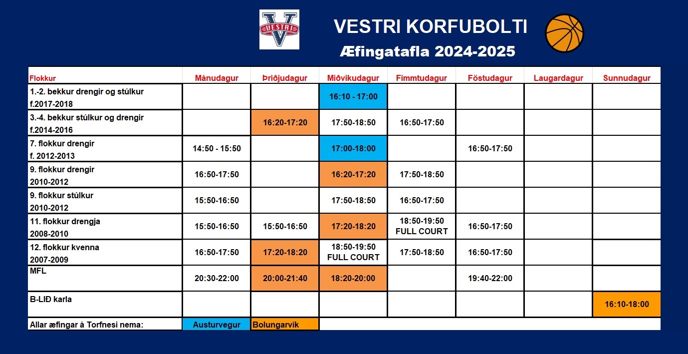 Æfingatafla Blakdeildar Vestra 2024-2025